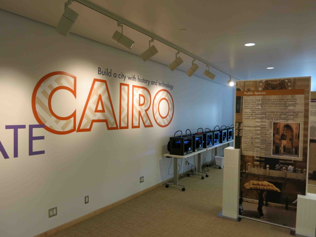 Connect, Create, Cairo’s exhibition and workshops explored unique urban spaces built in Cairo between the 9th and 18th centuries: water systems, streetscapes, commercial, civic and religious buildings, and houses. This journey through Cairo’s urban past aimed to inspire questions and creative thinking about cities and urban futures. The exhibition provided workshop participants inspiration to test, tinker, design and build a model city house using computers, design software, and 3D printers. Working collaboratively, participants placed their rapid prototyped building into the exhibition’s architectural model of Cairo’s historic Islamic quarter and reflected on their connections to the space and the making of place.